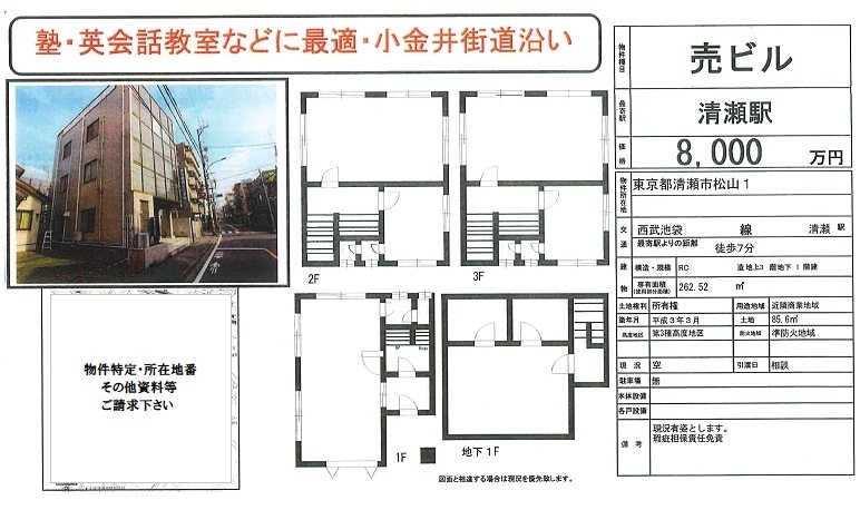 川崎市の一棟売りビル 駐車場あり 自社ビル・収入向等、多目的に利用可 自由に設計リフォーム可
